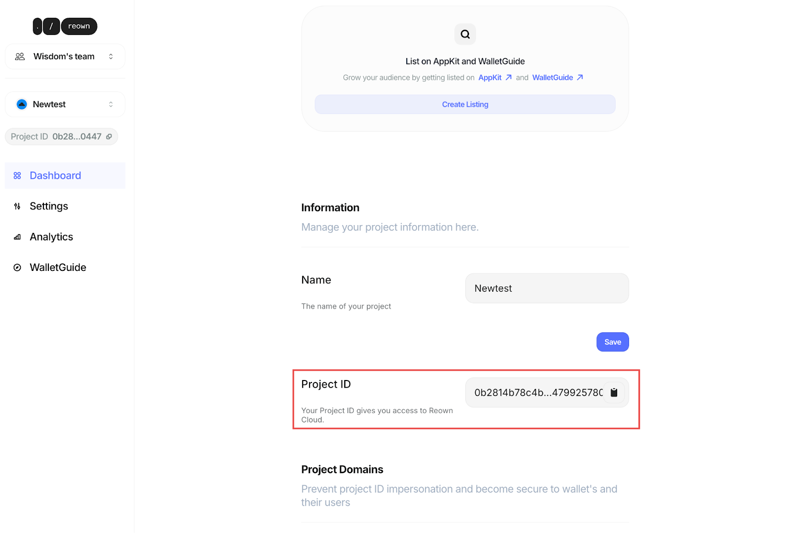 • Visit https://cloud.reown.com/ and create a WalletConnect project if you don’t already have one.