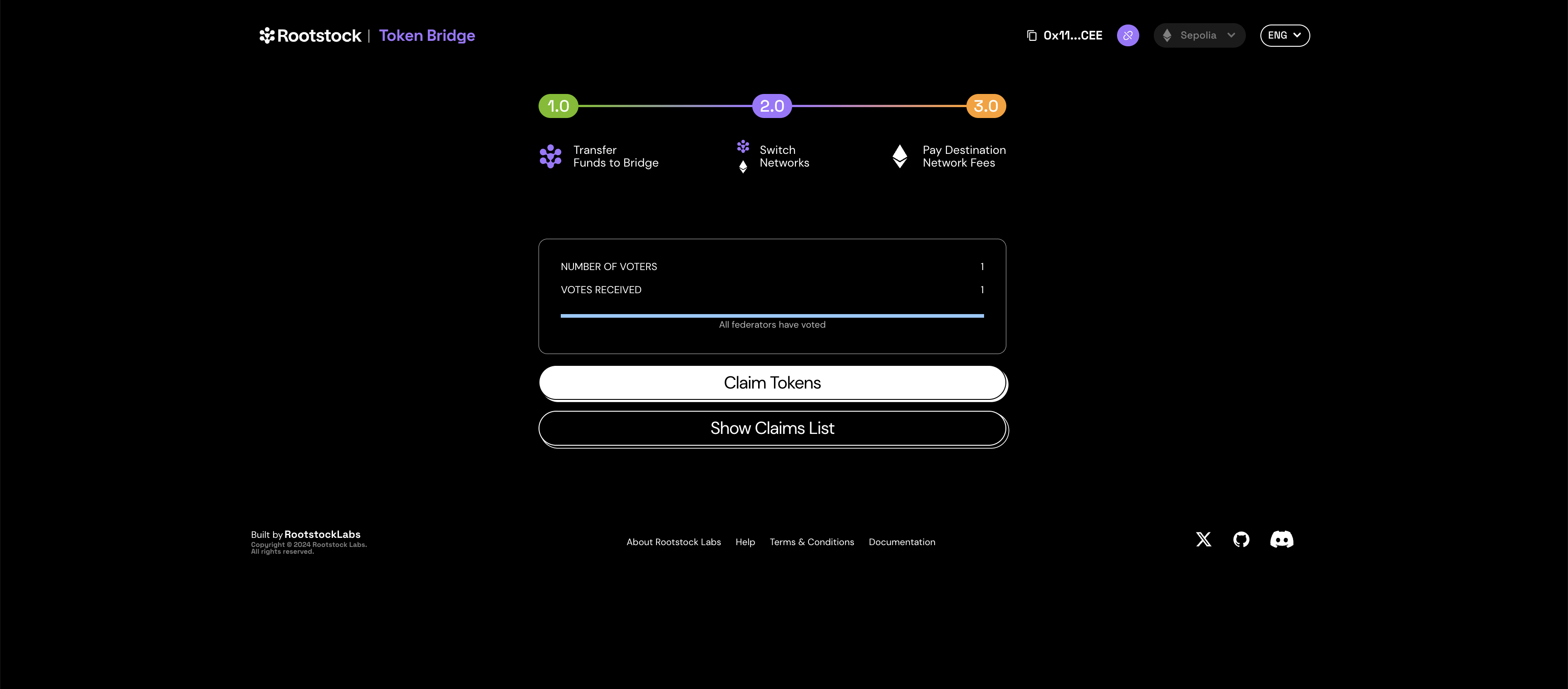 This guide describes the steps to transfer tokens using the Web Interface for the Rootstock Token Bridge dApp. Please refer to the project documentation, if you’d like to know more about how this bridge works. It is possible to test the transfer of tokens between Rootstock Testnet and Sepolia networks, or Rootstock Mainnet and Ethereum networks using the Rootstock Tokenbridge web interface.